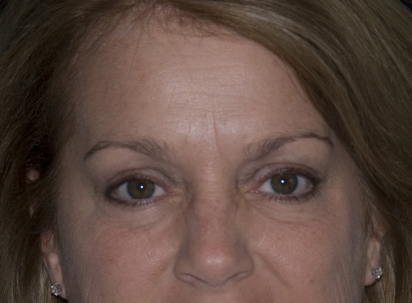 Her upper facial muscles are relaxed, and she looks bright and refreshed. Permanent lines remain but are much less noticeable.